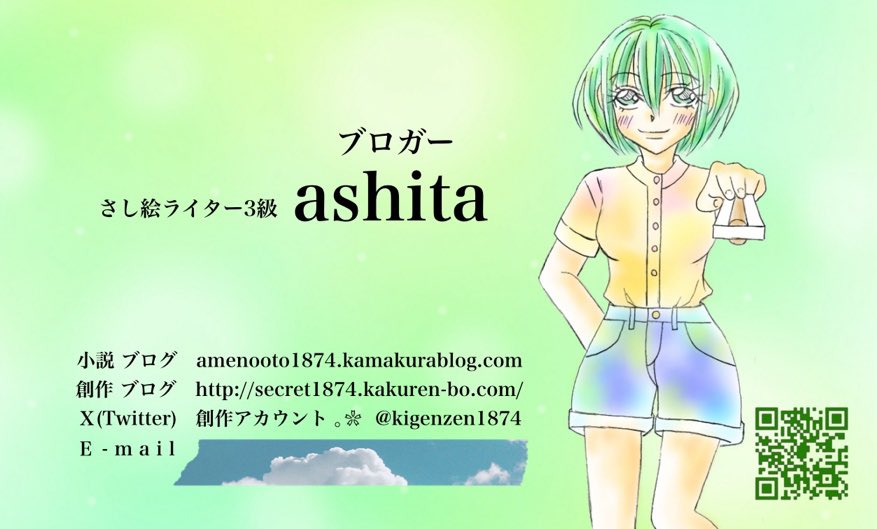 サイト案内を作ると思っていなかったので、名刺のQRコードは《雨の音を聴きながら》に繋がるようになっています。